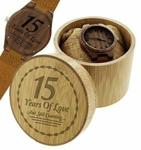 This is a great choice if you are interested in giving the more modern gift of a watch to commemorate your 15th anniversary. Made of 100% natural wood and genuine leather, this is a beautifully crafted gift that will allow him to display your love on his wrist.